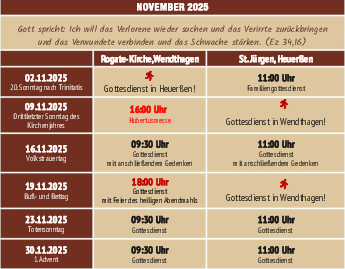 Beachten Sie bitte die geänderte Uhrzeit beim Gottesdienst am 09.11.2025!